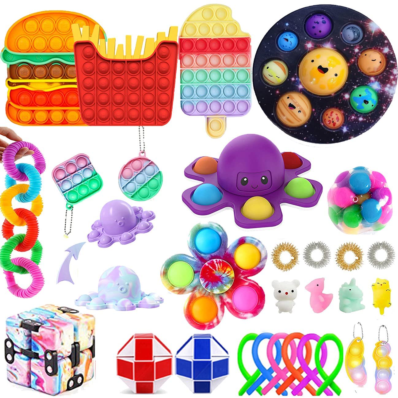 2021 New Fidget Toys Anti Stress Set Stretchy Strings Gift Pack Adults Children Squishy Sensory Antistress Relief Figet Toys Free To Choose The Model And Style Anti Stress Toys Juguetes Inquietos Zappeln Spielzeug Remuer